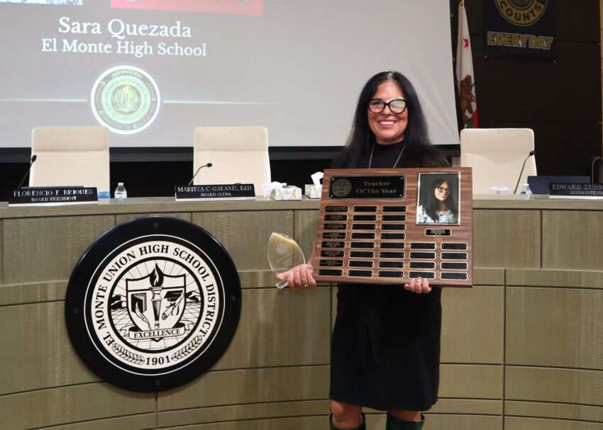 El Monte High School history teacher Sara Quezada, a 37-year educator known for her innovative teaching and steadfast dedication to students, has been named El Monte Union High School District’s 2025-26 Teacher of the Year. Quezada, who has spent the last decade inspiring learners at El Monte High, was honored during a Board meeting on Oct. 15.