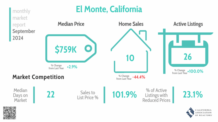 In summary, El Monte’s market data from September 2024 suggests a competitive yet shifting real estate landscape. While home prices remain robust, fluctuations in sales activity and price adjustments on listings point to a dynamic market where both buyers and sellers are recalibrating expectations. For potential buyers, staying informed about market trends and financing options will be crucial as they navigate this competitive environment. For sellers, accurately pricing homes will be essential to capture interest in a market that is both active and, increasingly, price-conscious.